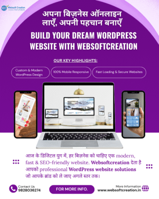 Websoft Creation, an admired IT training, development and outsourcing company, works innovatively each day to give best possible education to its clients. Websoft Creation is Kota based Indian Website Designing and Software Development Company. Founded with a mission to give services to it’s customers in web desinging, website development, E-Commerce solutions,SEO, Web Promotion and total internet marketing to grow there business by search engine friendly website desinging, web hosting and many more.